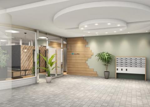 内装には木目を多用した温かみのあるデザインが空間全体に広がり、落ち着きと親しみやすさをもたらす快適な執務空間で、価格以上の価値を実感できるオフィス環境になっています。