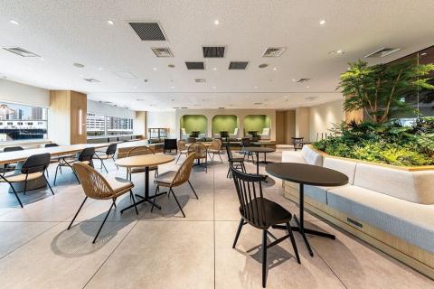 3階有料ラウンジ: 運河を眺めながらリフレッシュや飲食が楽しめる特等席。